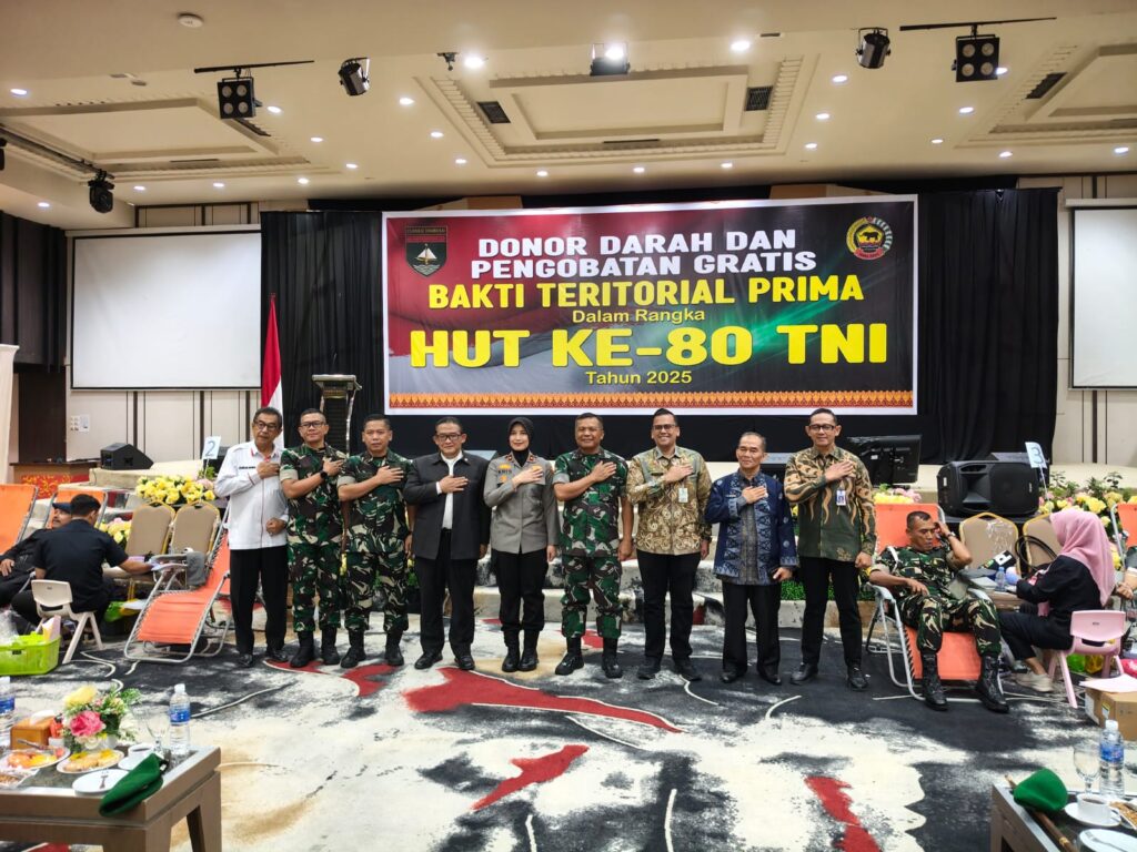 Riuh Online – Dalam rangka memperingati Hari Ulang Tahun (HUT) ke-80 Tentara Nasional Indonesia (TNI), Korem 031/Wira Bima menggelar kegiatan bakti kesehatan berupa donor darah dan layanan pengobatan gratis dengan tema Bakti Teritorial Prima. Acara tersebut berlangsung di Ballroom Hotel Furaya, Jalan Jenderal Sudirman, Pekanbaru, Kamis pagi (11/09/2025) sekitar pukul 08.30 WIB.