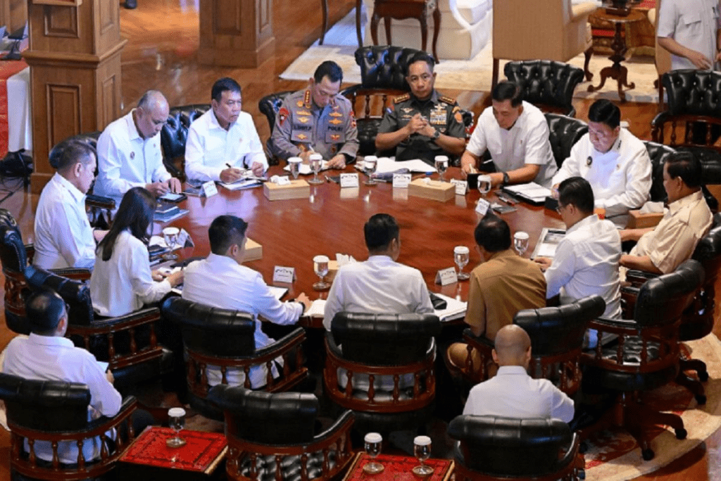 Riuh Online — Presiden Prabowo Subianto menggelar rapat terbatas (ratas) bersama jajaran menteri bidang politik dan keamanan (polkam) di kediaman pribadinya, Padepokan Garuda Yaksa, Bukit Hambalang, Bogor, Jawa Barat, pada Senin (23/6/2025).