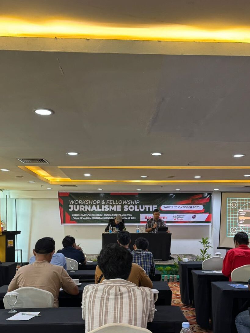 Riuh Online— Pemerintah Provinsi Riau menegaskan komitmennya untuk mewujudkan pembangunan hijau dan berkelanjutan melalui berbagai kebijakan lingkungan dan ekonomi hijau. Komitmen tersebut disampaikan dalam kegiatan Workshop Jurnalisme Solutif: Jurnalisme Solusi untuk Lanskap Riau Berkelanjutan yang digelar di Hotel Grand Suka, Pekanbaru, Sabtu (25/10).